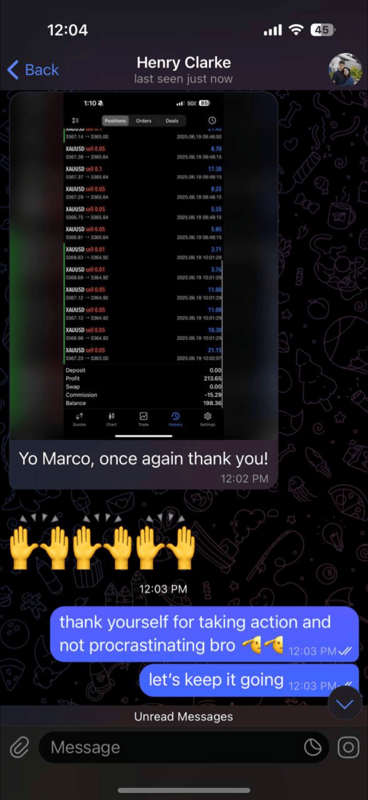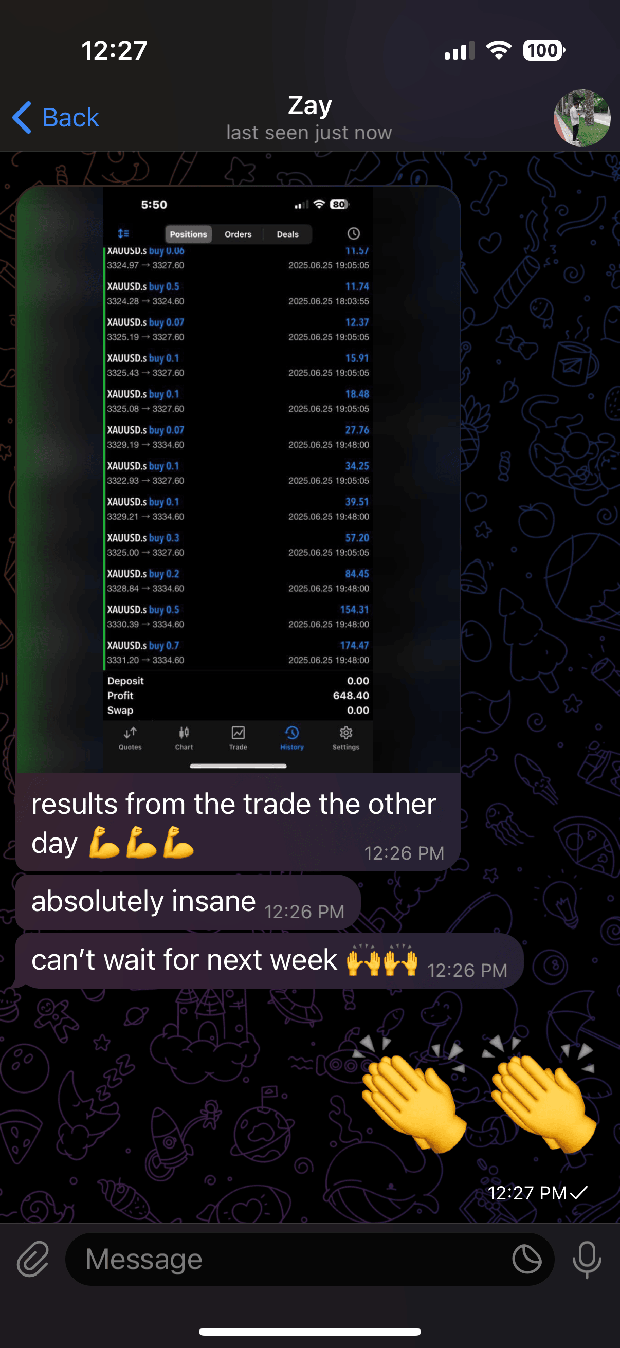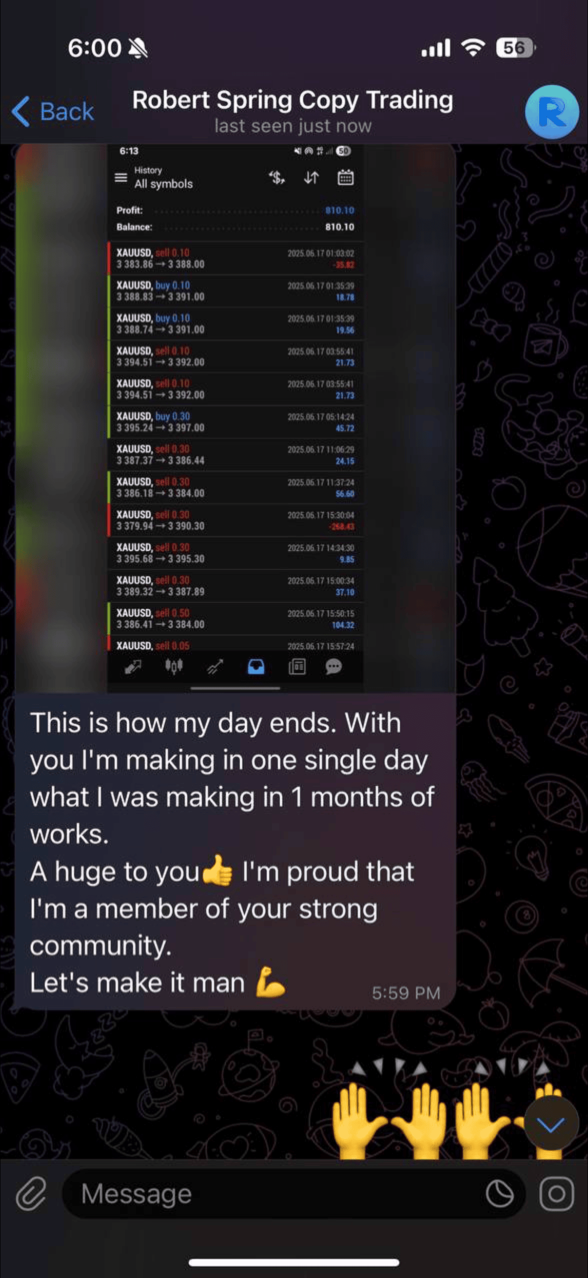 Me and my team of professional analysts (with years of verified results and real track records) study the charts, find the winning trades, and send you a simple message: “Buy now” or “Sell now”