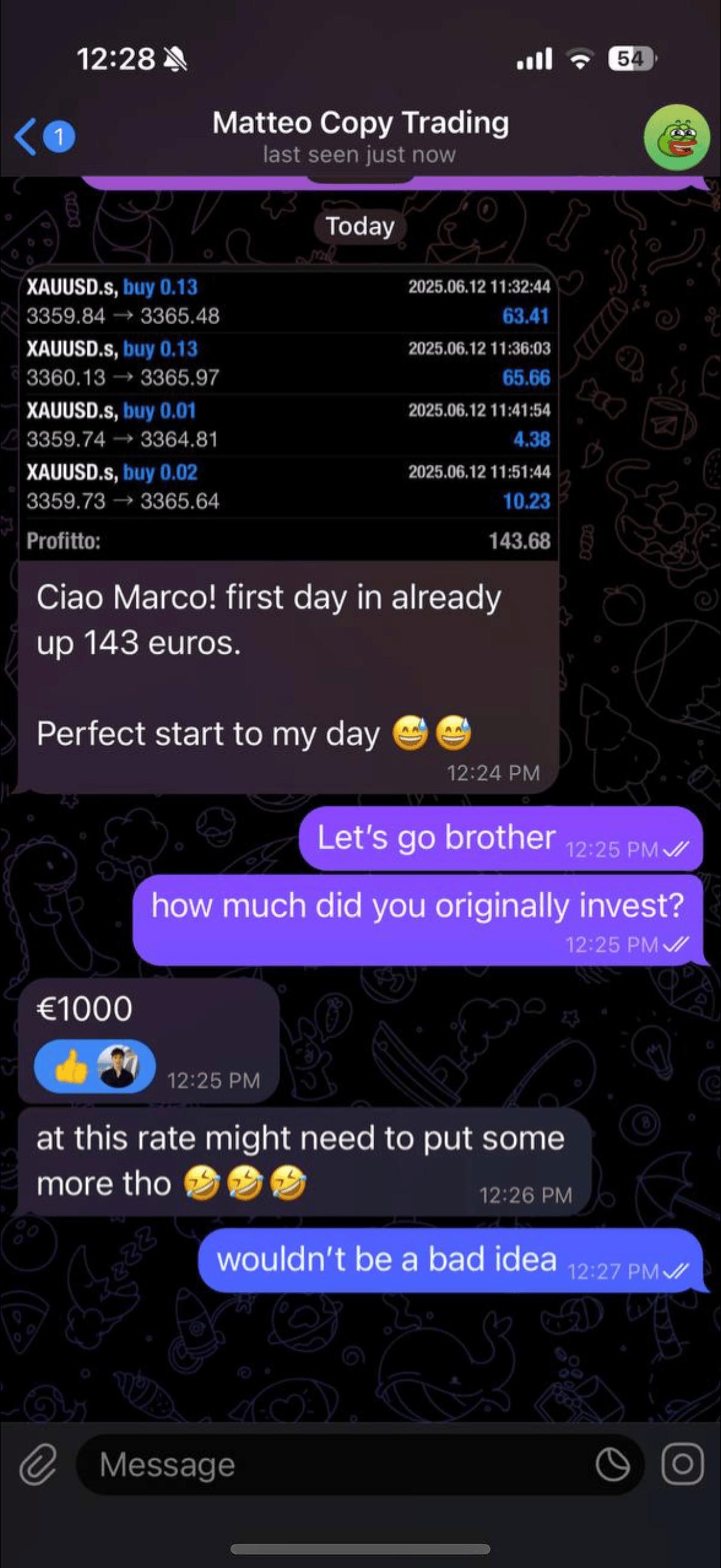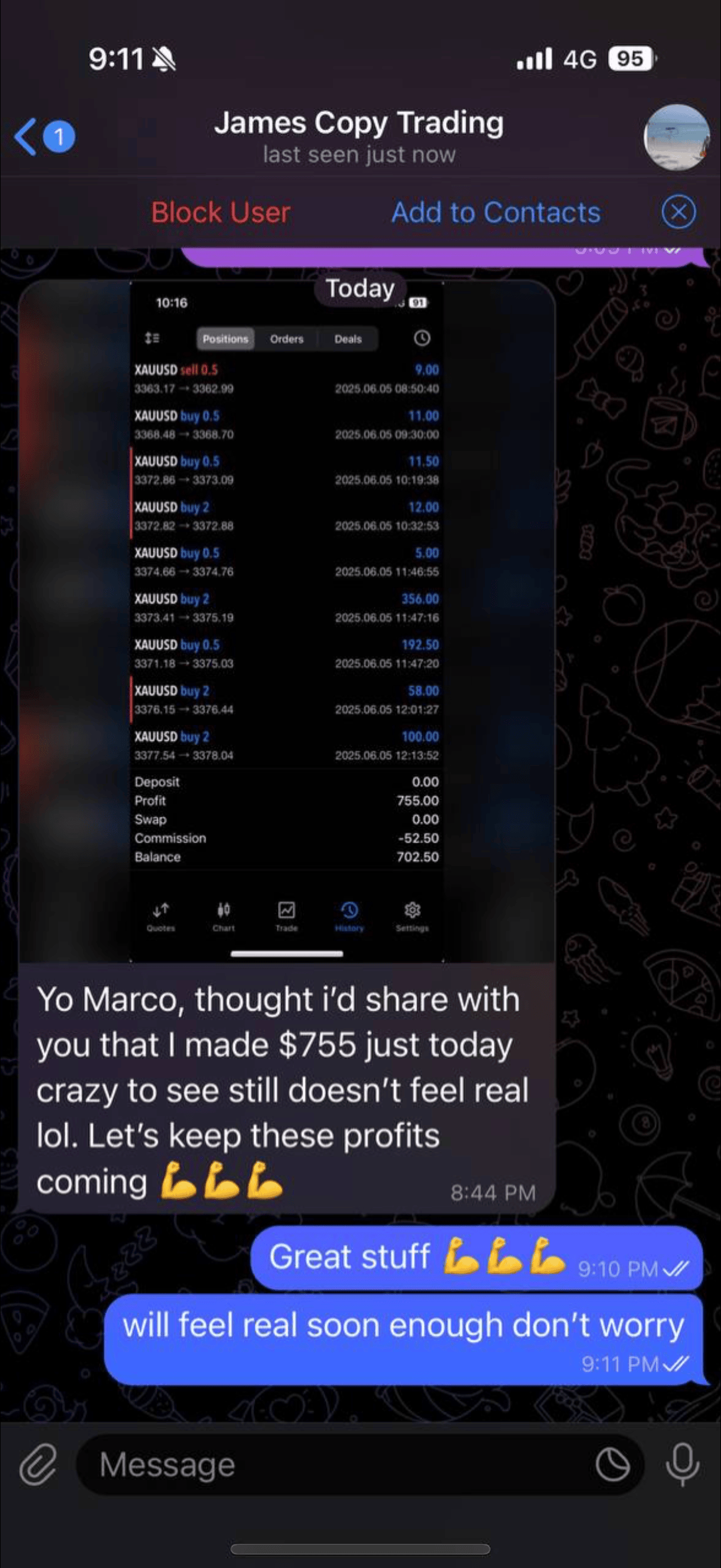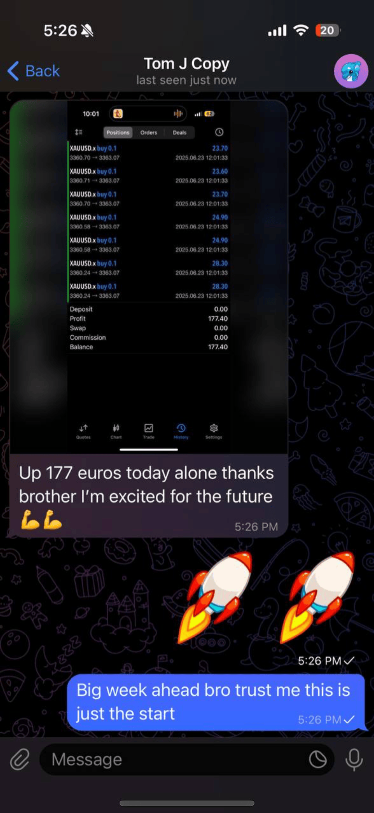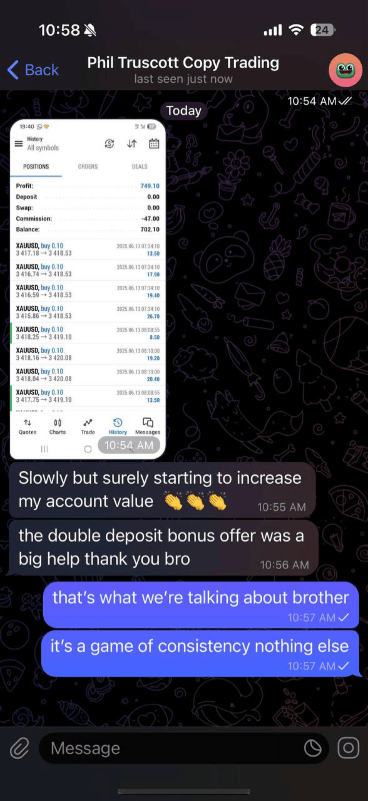 Me and my team of professional analysts (with years of verified results and real track records) study the charts, find the winning trades, and send you a simple message: “Buy now” or “Sell now”
